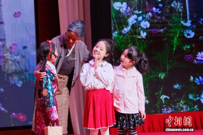 圖為民族團結(jié)原創(chuàng)情景短劇《一起話下石榴紅》演出現(xiàn)場。西藏自治區(qū)民委 供圖