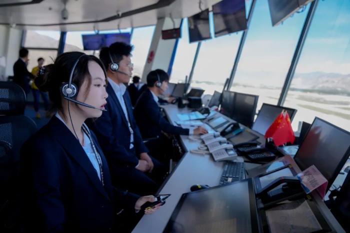 2025年7月18日,管制員在拉薩貢嘎國際機(jī)場塔臺(tái)工作。中新社記者 張祥毅 攝