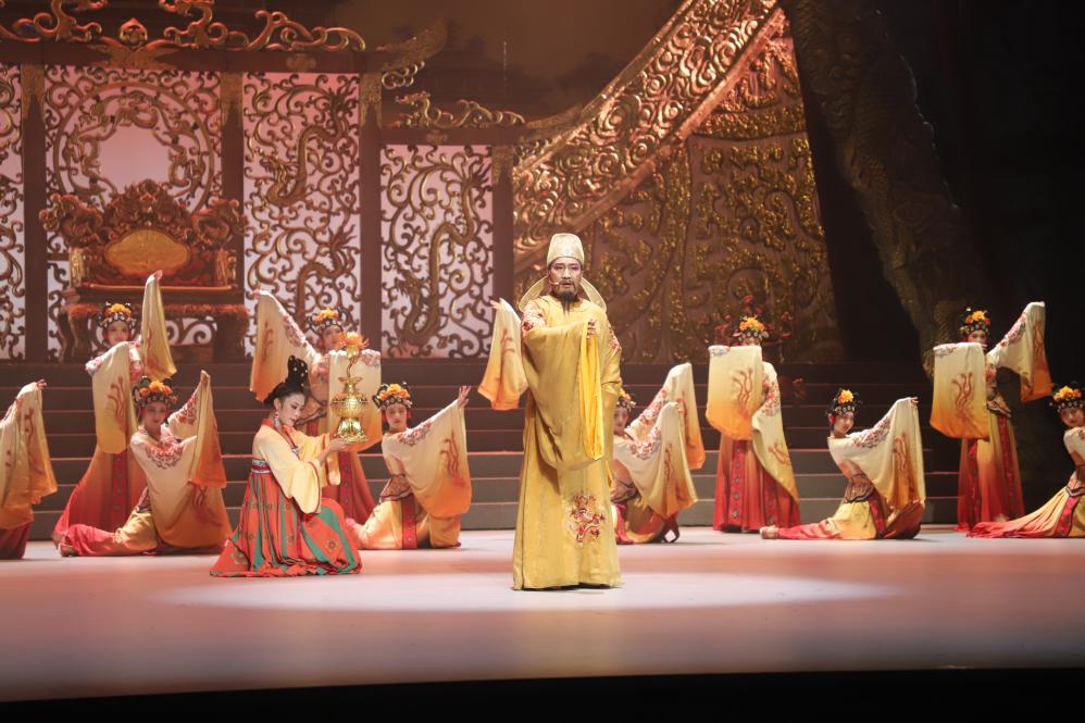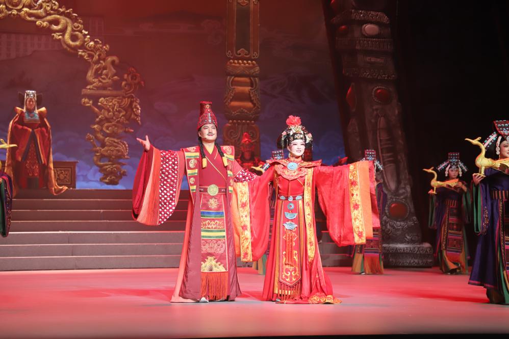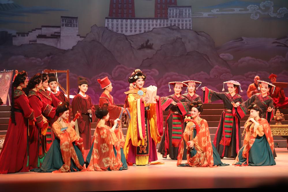 藏戲《金城公主》演出現(xiàn)場(chǎng)。(黃南州融媒體中心供圖,孫麗麗 攝)