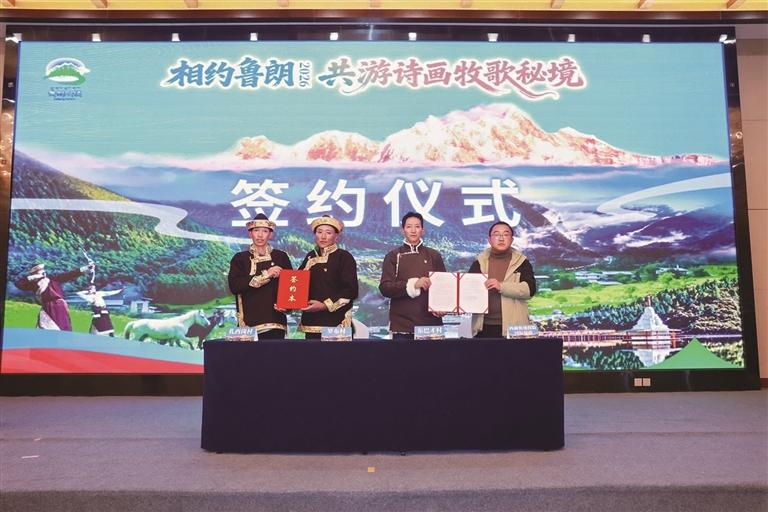 現(xiàn)場,還舉行了簽約儀式,魯朗東巴才村、羅布村、扎西崗村村委會代表與拉薩多家優(yōu)質(zhì)旅行社簽訂合作意向協(xié)議。雙方圍繞文旅深度融合發(fā)展趨勢,聚焦沉浸式體驗、定制化旅游等細分領(lǐng)域展開深入交流,達成多項合作共識,將進一步拓寬魯朗景區(qū)的客源渠道,提升品牌影響力。