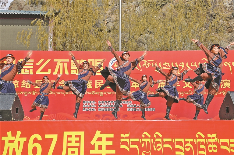 3月27日,瓊結(jié)縣舉行“叫我們怎么不歌唱”主題文藝演出。記者 白瑪澤旺 通訊員 倫珠澤仁 攝