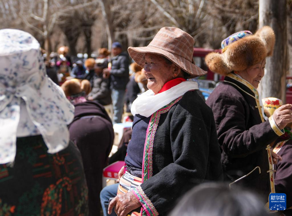 卓瑪吾珠(左)和鄉(xiāng)親們?cè)趹c祝春耕儀式上(3月16日攝)。新華社記者 晉美多吉 攝