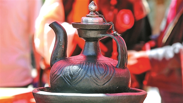 察雅黑陶與其他陶罐的最大區(qū)別除了原材料的選取外,還體現(xiàn)在獨(dú)特的制作工藝上。傳統(tǒng)黑陶多為簡約的罐、壺、碗等形制,圖案以簡單的弦紋、水波紋為主,體現(xiàn)了藏族文化中“崇尚自然、簡約質(zhì)樸”的審美?!霸谛聲r代,傳統(tǒng)技藝要想走進(jìn)年輕人的生活,必須在設(shè)計上大膽創(chuàng)新?!鼻檎f,為此,他結(jié)合現(xiàn)代生活需求與審美趨勢,對黑陶的外形、圖案進(jìn)行了大膽改良。