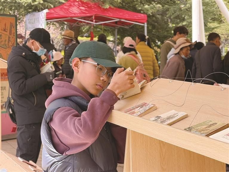 與開幕活動(dòng)同步開展的圖書市集,匯聚了25個(gè)精品展位,涵蓋各類圖書、文創(chuàng)產(chǎn)品、非遺好物,琳瑯滿目,滿足了不同讀者的需求。此外,現(xiàn)場(chǎng)設(shè)置的“悅”讀電話亭、書店漂流計(jì)劃、無障礙閱讀體驗(yàn)、繪本小屋、春日信箱等互動(dòng)場(chǎng)景,兼顧了不同年齡、不同需求的讀者,讓每一位到場(chǎng)者都能找到心靈的棲息之所,沉浸式感受閱讀的樂趣。同期亮相的“方寸山河——連環(huán)畫中的西藏故事”“拉薩是一首詩——少兒詩歌繪畫融合展”兩大主題展覽,以圖文交織的形式,生動(dòng)呈現(xiàn)了拉薩閱讀文化的傳承與展望,為書會(huì)增添了濃厚的文化氛圍。