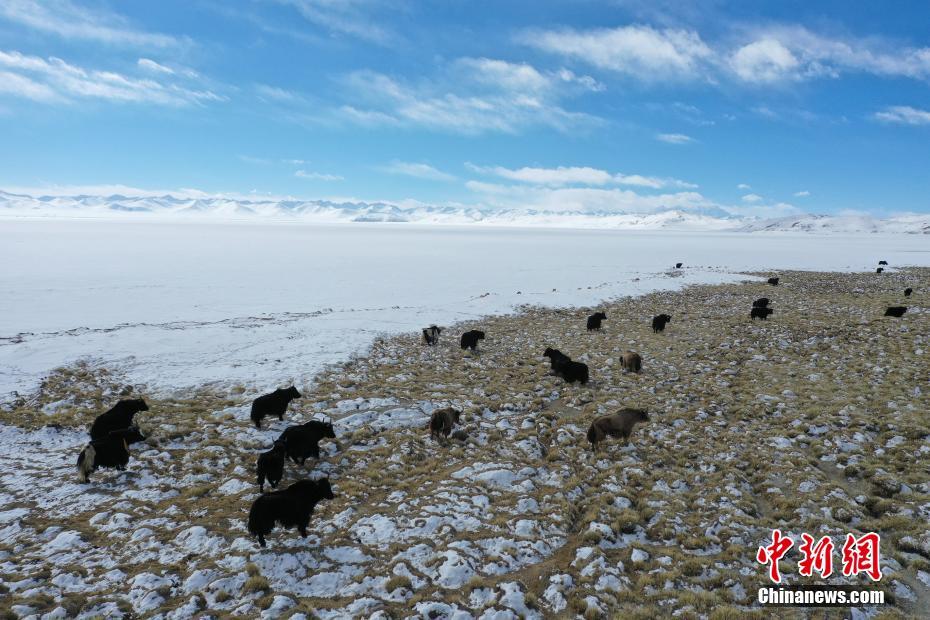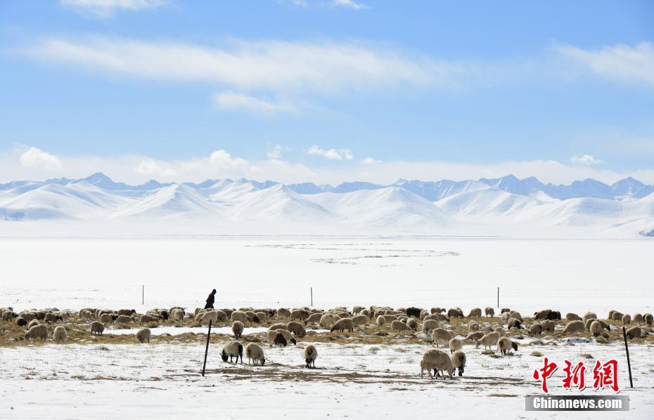 1月26日,牧民在納木錯(cuò)湖邊放牧。雪后的西藏納木錯(cuò)銀裝素裹,美景如畫。 中新社記者 貢嘎來(lái)松 攝