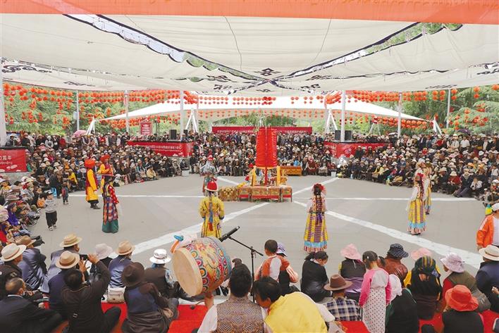 為進一步傳承、弘揚中華優(yōu)秀傳統(tǒng)文化,自今年5月29日以來,拉薩市文化局每周六都會舉辦“慶祝建黨100周年和西藏和平解放70周年‘藏戲演出季’”,藏戲演出共8場。以豐富多彩的藏戲傳統(tǒng)經(jīng)典劇目,踐行“非遺保護為了人民、保護成果人民共享”理念,營造出了全社會共同參與保護傳承中華民族優(yōu)秀傳統(tǒng)文化的濃厚氛圍,展現(xiàn)著拉薩人民幸福安樂生活的新氣象。