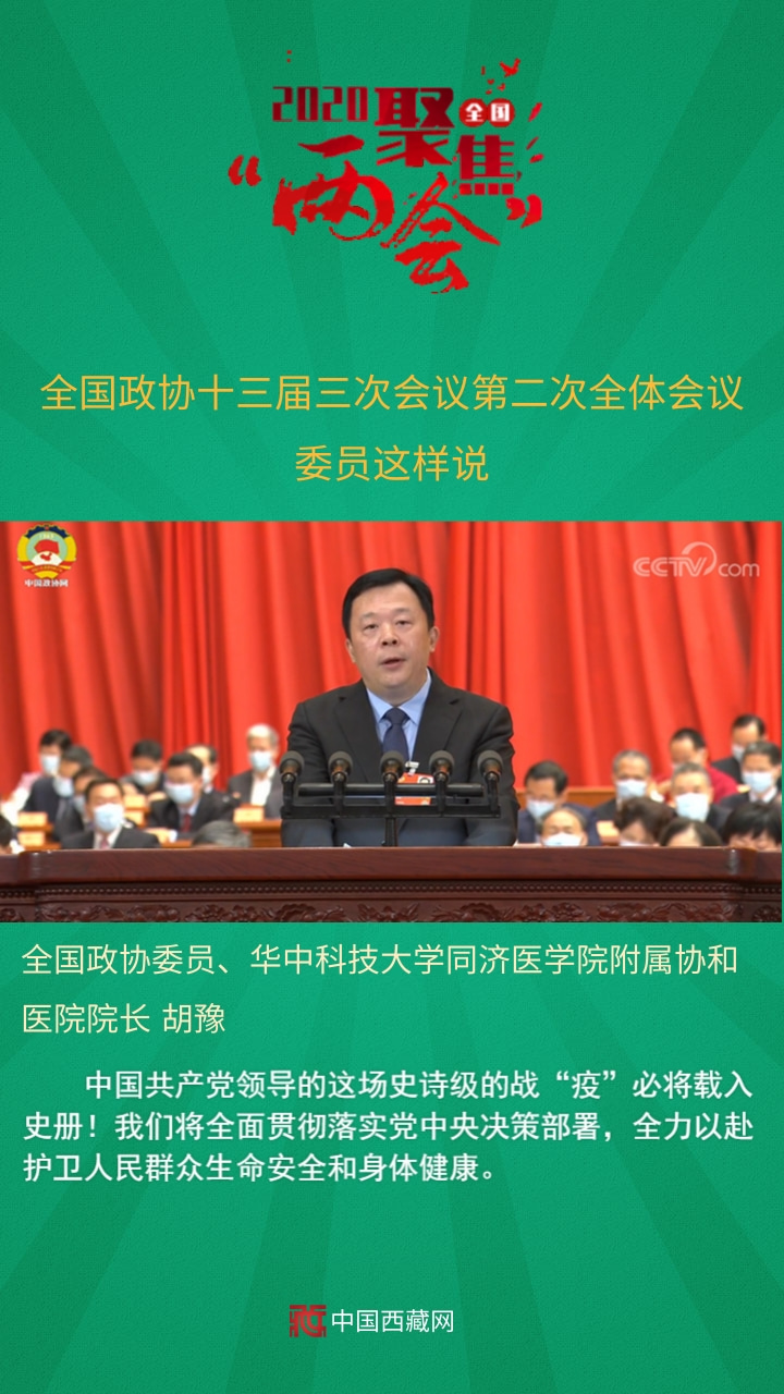 全國政協(xié)委員、華中科技大學(xué)同濟(jì)醫(yī)學(xué)院附屬協(xié)和醫(yī)院院長胡豫發(fā)言說,中國共產(chǎn)黨領(lǐng)導(dǎo)的這場史詩級的戰(zhàn)“疫”必將載入史冊!我們將全面貫徹落實黨中央決策部署,全力以赴護(hù)衛(wèi)人民群眾生命安全和身體健康。