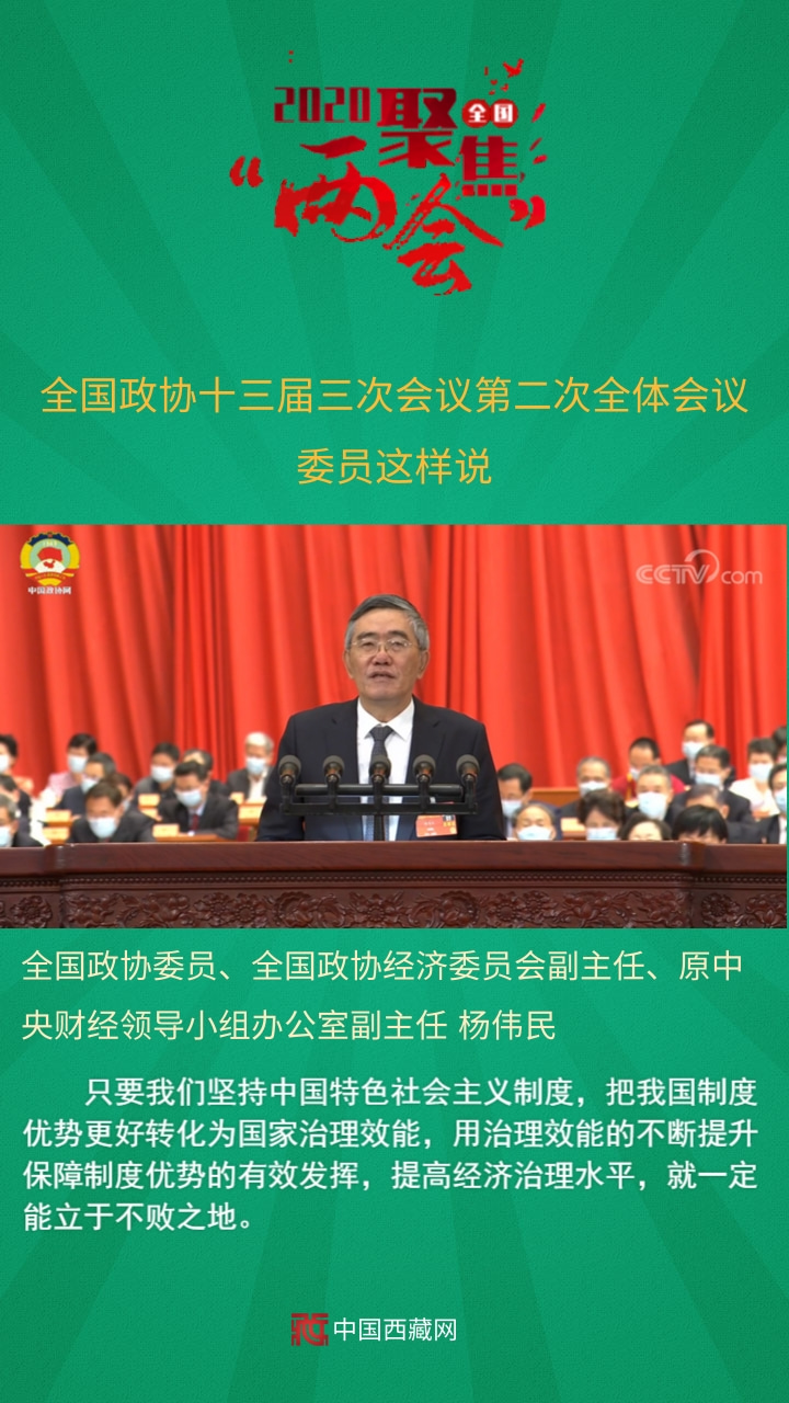 全國政協(xié)委員、全國政協(xié)經(jīng)濟(jì)委員會副主任、原中央財經(jīng)領(lǐng)導(dǎo)小組辦公室副主任楊偉民發(fā)言說,只要我們堅持中國特色社會主義制度,把我國制度優(yōu)勢更好轉(zhuǎn)化為國家治理效能,用治理效能的不斷提升保障制度優(yōu)勢的有效發(fā)揮,提高經(jīng)濟(jì)治理水平,就一定能立于不敗之地。