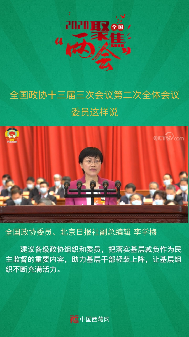 全國政協(xié)委員、北京日報社副總編輯李學(xué)梅發(fā)言說,建議各級政協(xié)組織和委員,把落實基層減負(fù)作為民主監(jiān)督的重要內(nèi)容,助力基層干部輕裝上陣,讓基層組織不斷充滿活力。
