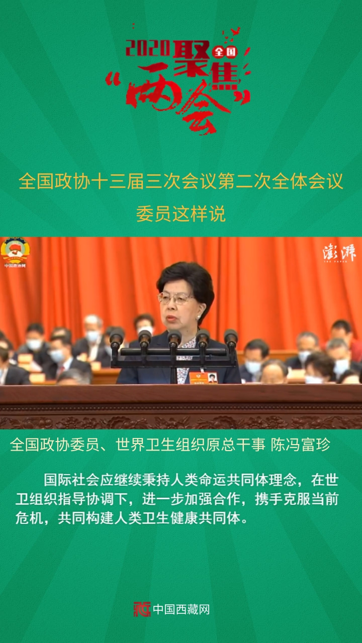 全國政協(xié)委員、世界衛(wèi)生組織原總干事陳馮富珍發(fā)言說,國際社會應(yīng)繼續(xù)秉持人類命運共同體理念,在世衛(wèi)組織指導(dǎo)協(xié)調(diào)下,進(jìn)一步加強合作,攜手克服當(dāng)前危機,共同構(gòu)建人類衛(wèi)生健康共同體。
