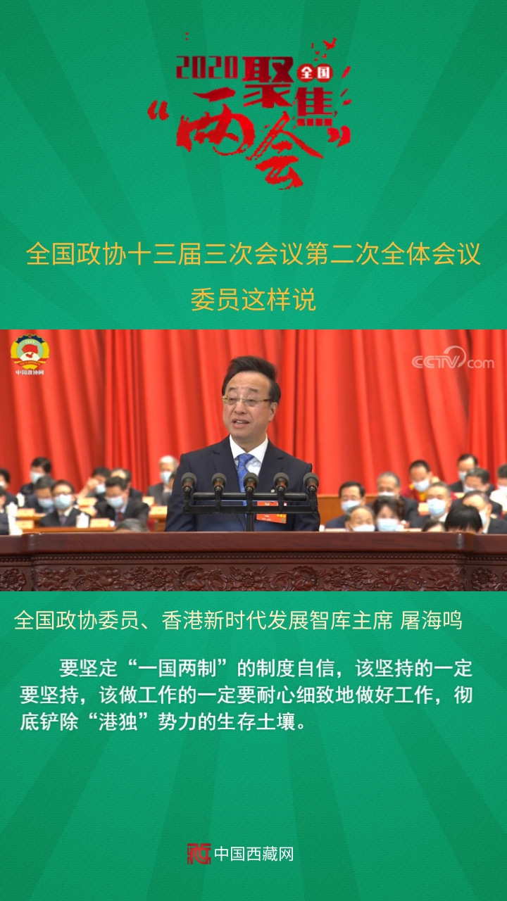 全國政協(xié)委員、香港新時代發(fā)展智庫主席屠海鳴發(fā)言說,要堅定“一國兩制”的制度自信,該堅持的一定要堅持,該做工作的一定要耐心細(xì)致地做好工作,徹底鏟除“港獨”勢力的生存土壤。