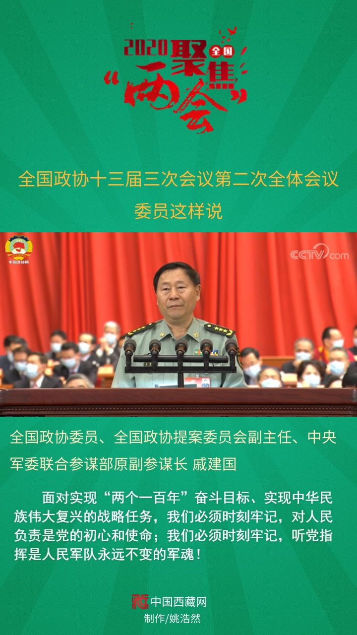 全國政協(xié)委員、全國政協(xié)提案委員會副主任、中央軍委聯(lián)合參謀部原副參謀長戚建國發(fā)言說,面對實現(xiàn)“兩個一百年”奮斗目標(biāo)、實現(xiàn)中華民族偉大復(fù)興的戰(zhàn)略任務(wù),我們必須時刻牢記,對人民負(fù)責(zé)是黨的初心和使命;我們必須時刻牢記,聽黨指揮是人民軍隊永遠(yuǎn)不變的軍魂!