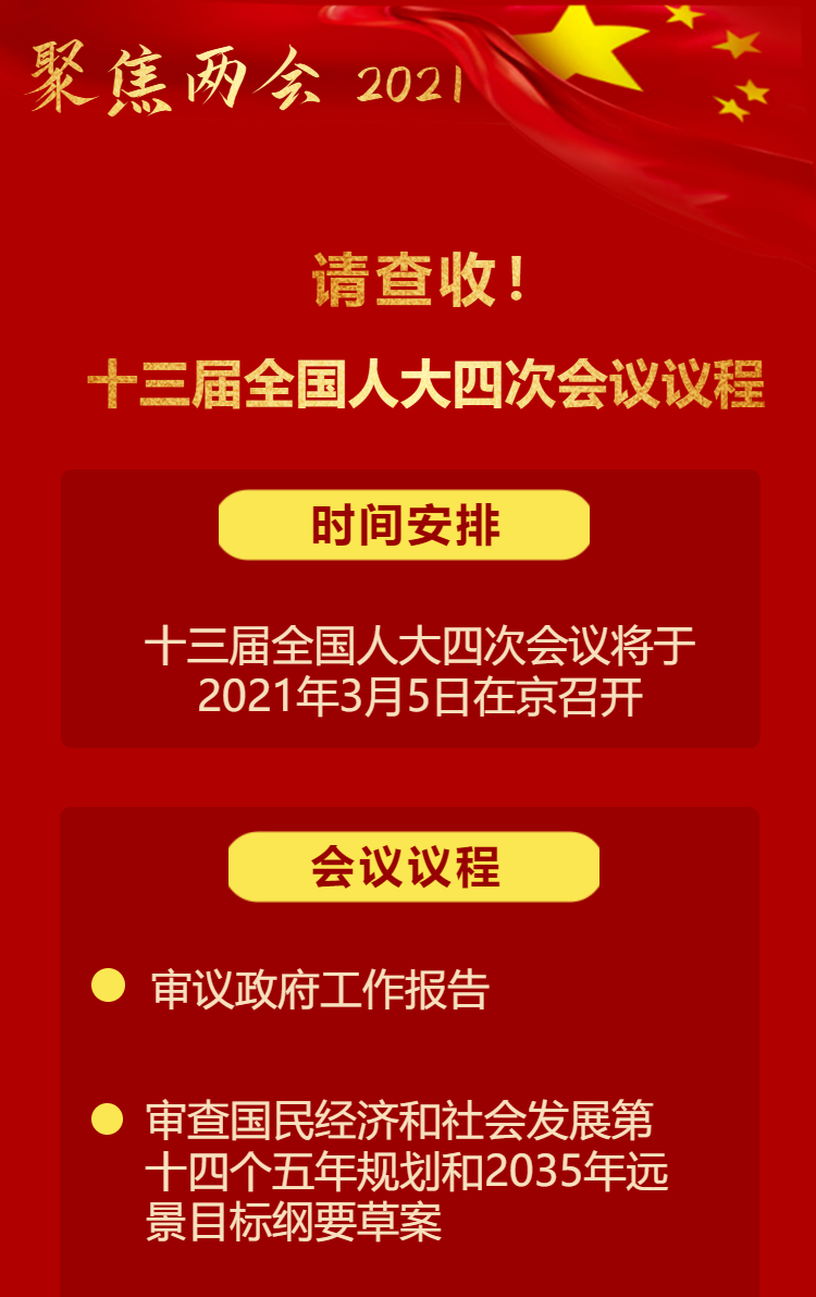 【聚焦兩會(huì) 2021】請(qǐng)查收!十三屆全國人大四次會(huì)議議程