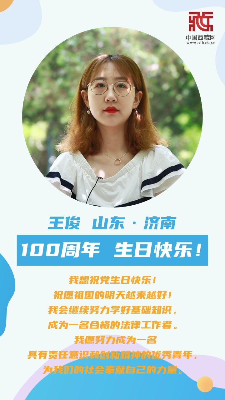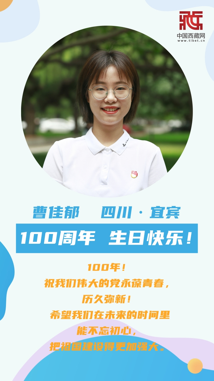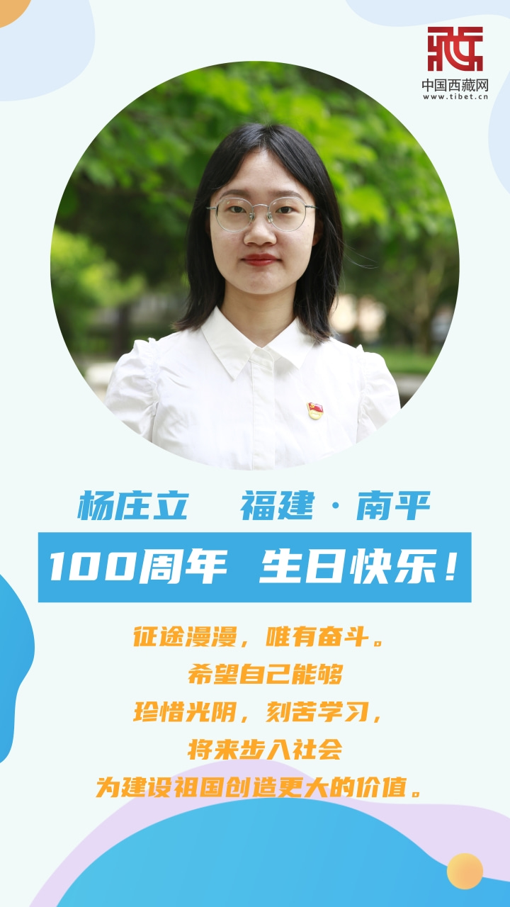 100年前,中國共產(chǎn)黨為苦難深重的中華民族帶來了光明與希望,100年后,中國人民在中國共產(chǎn)黨的帶領(lǐng)下,看到了中華民族偉大復(fù)興的曙光。在中國共產(chǎn)黨成立100周年之際,一起聆聽新時(shí)代青年學(xué)子送上的祝福?。ㄖ谱?許娜 編輯/澤仁措姆)