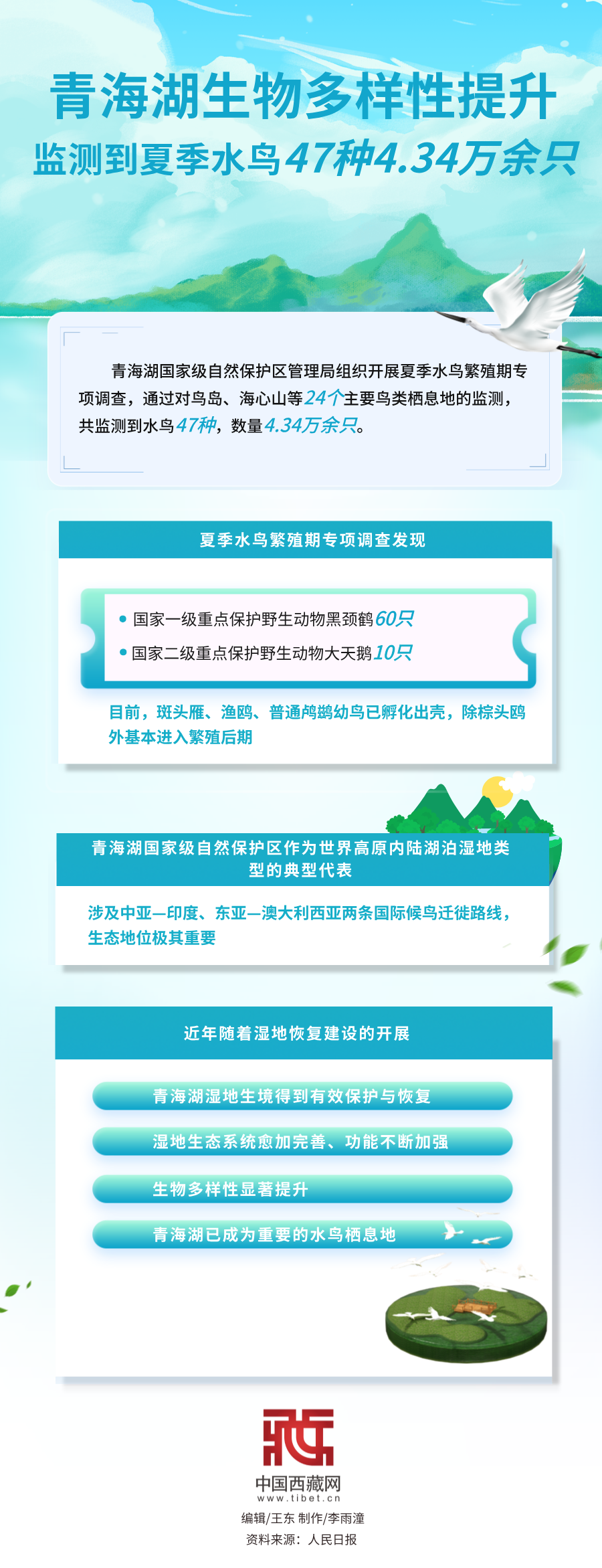 海報(bào)|青海湖生物多樣性提升 監(jiān)測(cè)到夏季水鳥47種4.34萬(wàn)余只