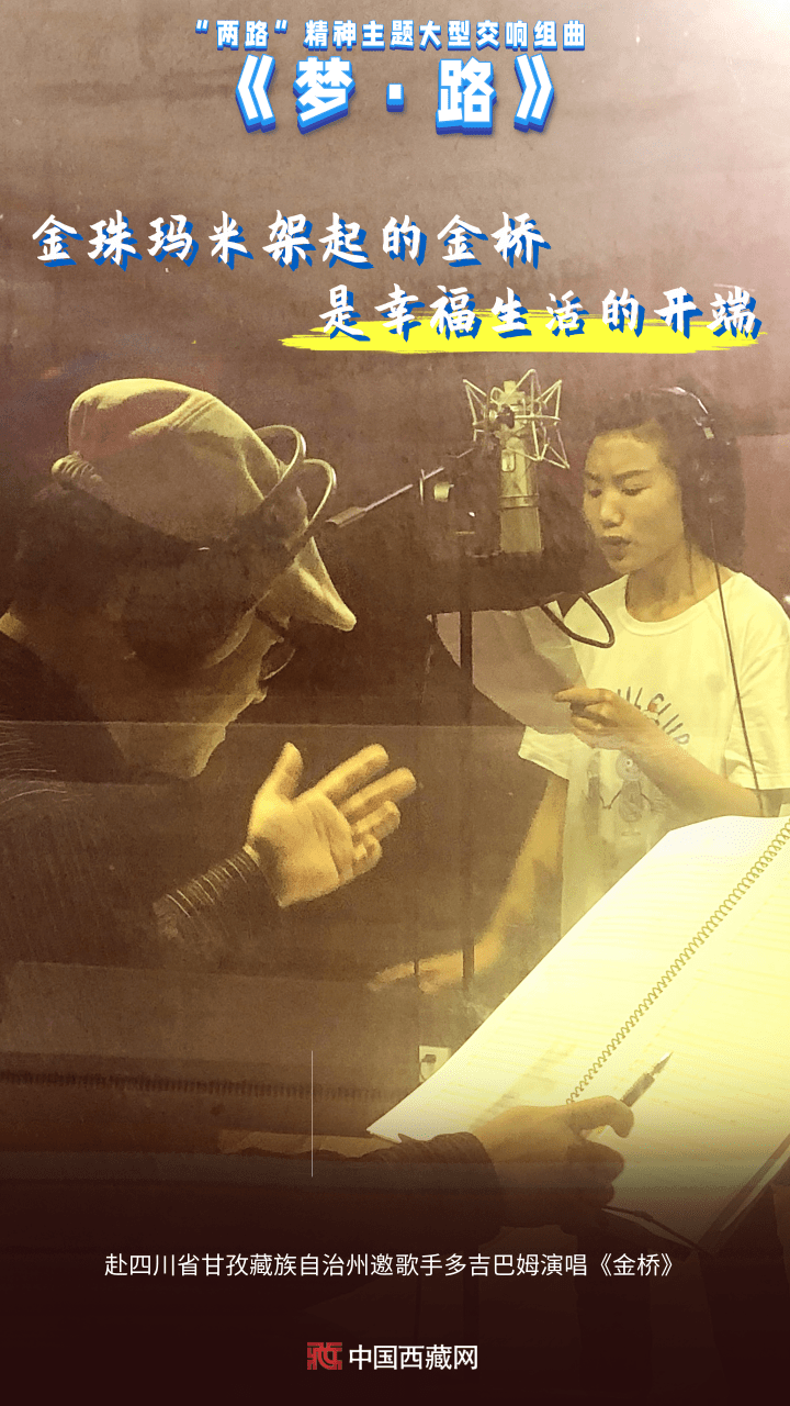 創(chuàng)作團(tuán)隊(duì)三次深入西藏、四川、青海等省區(qū)市的二十多個(gè)“兩路”相關(guān)歷史地域,拜訪數(shù)十位民族民間器樂(lè)演奏、聲樂(lè)演唱、藏戲表演藝術(shù)家和國(guó)家級(jí)非物質(zhì)文化遺產(chǎn)傳承人,對(duì)藏族風(fēng)格音樂(lè)素材進(jìn)行詳盡細(xì)致的采集,從中國(guó)愛(ài)樂(lè)樂(lè)團(tuán)演奏家們的傾情演奏,到四川省甘孜藏族自治州金剛寺大殿采聲,從錄制藏族姑娘銀鈴天籟般的嗓音,到83歲高齡的國(guó)家級(jí)非物質(zhì)文化遺產(chǎn)傳承人的獻(xiàn)唱山歌……《夢(mèng)·路》讓大型交響樂(lè)和原生態(tài)聲音融合、碰撞、組合,用音符刻畫了中華筑路英雄馳騁世界屋脊的偉大樂(lè)章。(中國(guó)西藏網(wǎng) 編輯、制作/王茜 供圖/方崠清)
