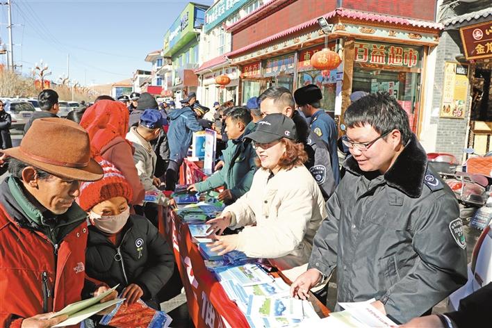 阿里地區(qū)生態(tài)環(huán)境局工作人員在向群眾發(fā)放環(huán)境保護宣傳材料。