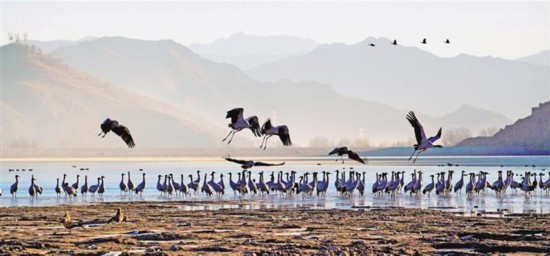 圖為在林周縣保護區(qū)內自由飛翔的黑頸鶴。 央金 攝