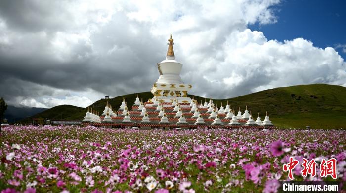 花海中的白塔?!⒅铱?攝