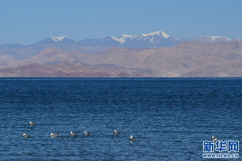 游弋在班公湖中的鳥兒(10月19日攝)。新華網 張宸攝