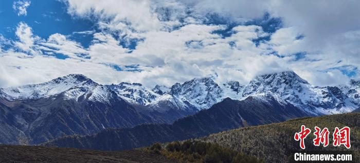 圖為銀白色白馬雪山與綠色植被勾勒生態(tài)畫卷?!∨搜┒?攝