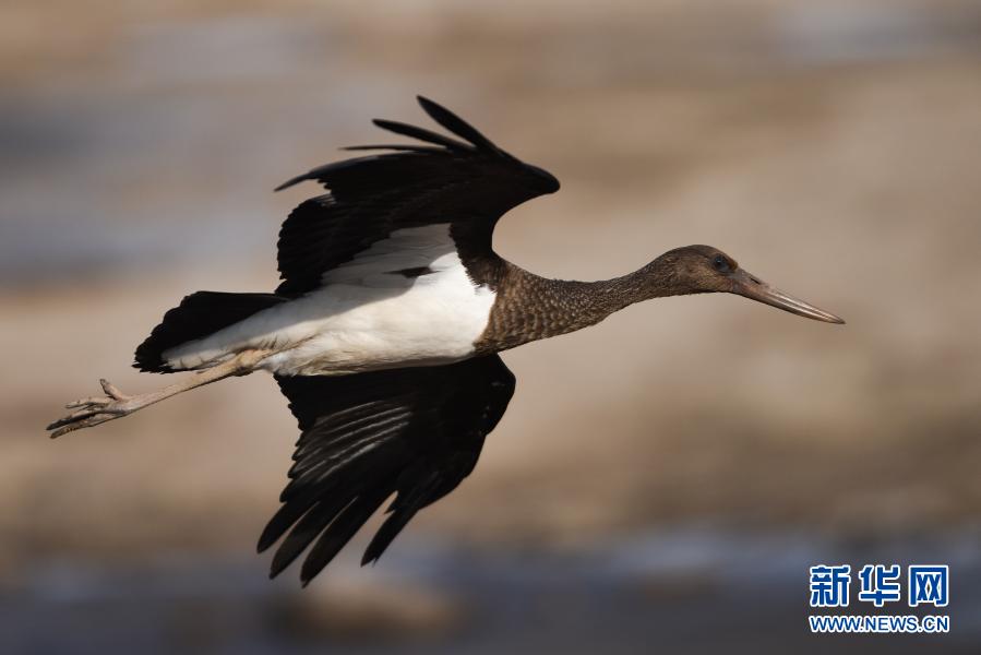 12月6日,一只黑鸛在西寧市北川河濕地公園內(nèi)嬉戲。近日,位于青海省西寧市的北川河濕地公園迎來兩只黑鸛。黑鸛屬鸛形目、鸛科,國家一級保護動物,目前全世界僅存3000只左右,屬于國寶級珍禽。新華社記者吳剛攝