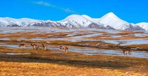 在楚瑪爾河附近一片廣袤的草地上,100多只雌雄合群的藏羚羊群,雄藏羚羊群和雌藏羚羊群在非交配季都是分群生活的。雄藏羚羊和雌藏羚羊每年冬季發(fā)情和交配前,首先要合群,求偶場一般在開闊的地方,楚瑪爾河、卓乃湖、太陽湖等水草豐美的草原就是它們“談戀愛”的好去處。