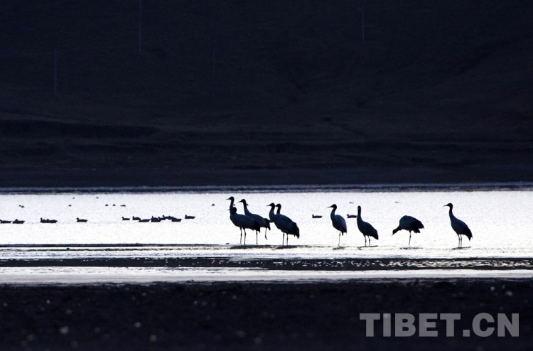 兩面夾山、背風(fēng)向陽的虎頭山水庫,是候鳥的主要夜棲地。每年10月中旬開始,國家一級(jí)野生保護(hù)動(dòng)物黑頸鶴便從逐漸寒冷的藏北草原出發(fā),成群結(jié)隊(duì)地飛越叢山峻嶺遷徙到虎頭山水庫以及其所處的雅魯藏布江中游河谷地帶越冬。