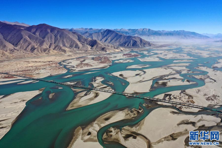 冬日,雅魯藏布江緩緩流淌,蜿蜒的河流與藍(lán)天、群山相互映襯,呈現(xiàn)出一幅美麗的自然畫卷。