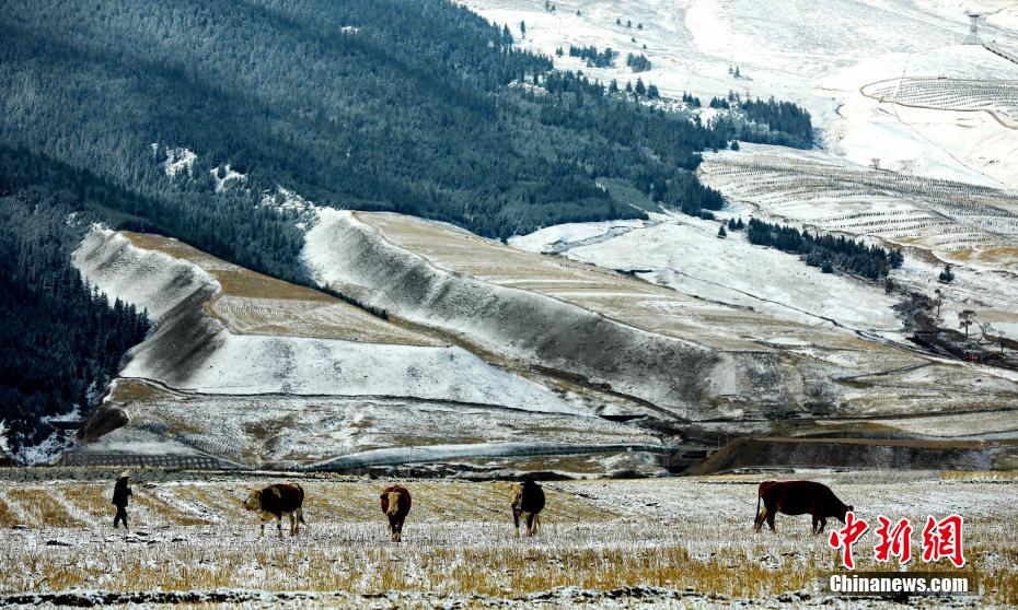 近日,位于祁連山腹地的青海省海北藏族自治州祁連縣被白雪覆蓋,“天境祁連”靜謐巍峨。航拍鏡頭下的雪山、草原、森林、村莊……每一處都是美景。蘇金元 攝