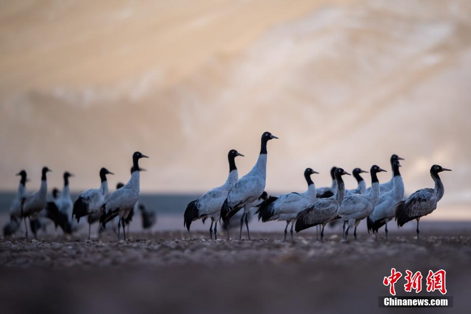 2月17日,西藏拉薩市林周縣黑頸鶴保護區(qū)內(nèi),黑頸鶴翩躚起舞、分外美麗。中新社記者 何蓬磊 攝