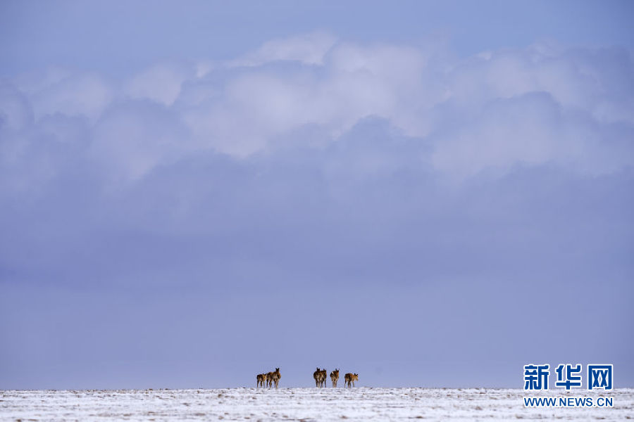 近日,可可西里迎來(lái)降雪,大量藏羚羊匯聚在可可西里五道梁地區(qū),踏上遷徙之路。