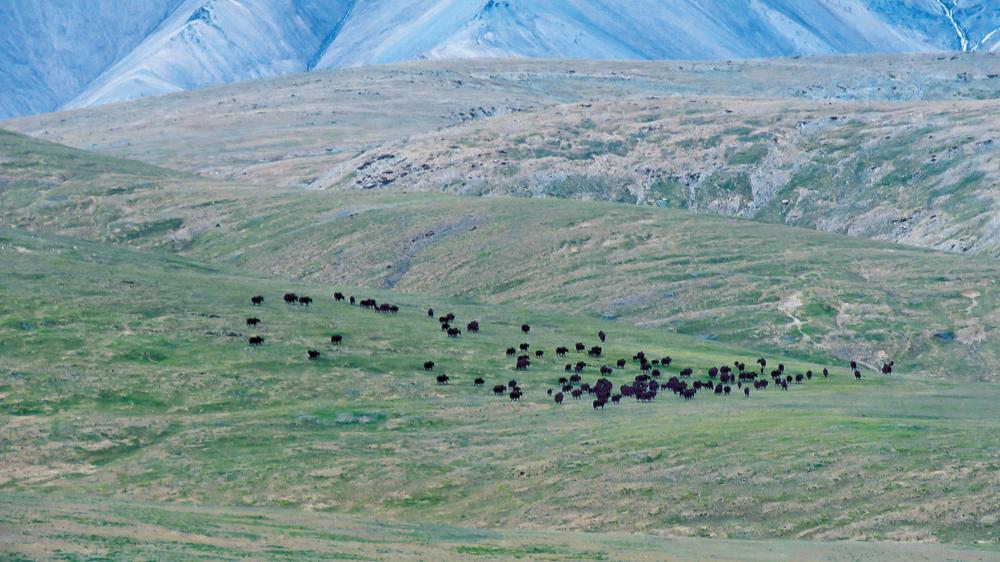 日前,青海省玉樹藏族自治州曲麻萊縣曲麻河鄉(xiāng)昂拉村生態(tài)管護(hù)員濤西昂扎在雜日尕吶山巡護(hù)途中拍攝到了一個極為震撼、又特別罕見的場面:一個種群數(shù)量達(dá)二三百頭的野牦牛群正在悠閑地吃草。