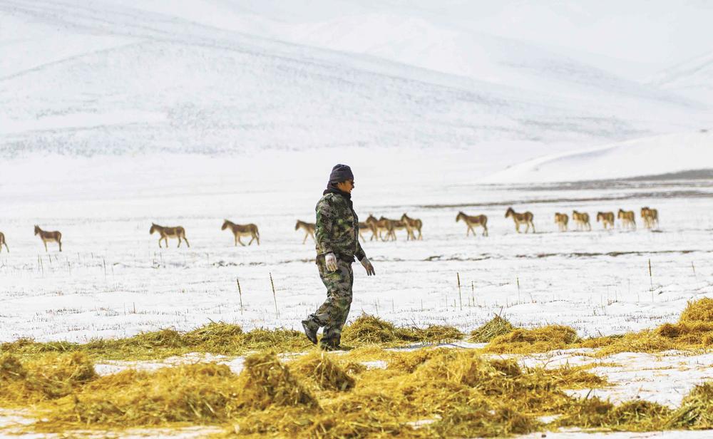 從戴上紅袖章那天開(kāi)始,他就穿梭在山林、湖畔、河邊,有時(shí)撿拾垃圾,有時(shí)關(guān)注野生動(dòng)物的蹤跡,默默守護(hù)這片家鄉(xiāng)的草場(chǎng)、湖泊、高山。在一次巡護(hù)中,切保和隊(duì)友們發(fā)現(xiàn)由于季節(jié)的變化,導(dǎo)致黑頸鶴等野生動(dòng)物的巢穴被淹,給它們的生產(chǎn)棲息帶來(lái)了影響。于是,他和其他生態(tài)管護(hù)員為黑頸鶴等野生動(dòng)物修巢筑窩12個(gè)?!安蛔尷廴静輬?chǎng)、污染動(dòng)植物的水源地”是每一位管護(hù)員的共同想法。