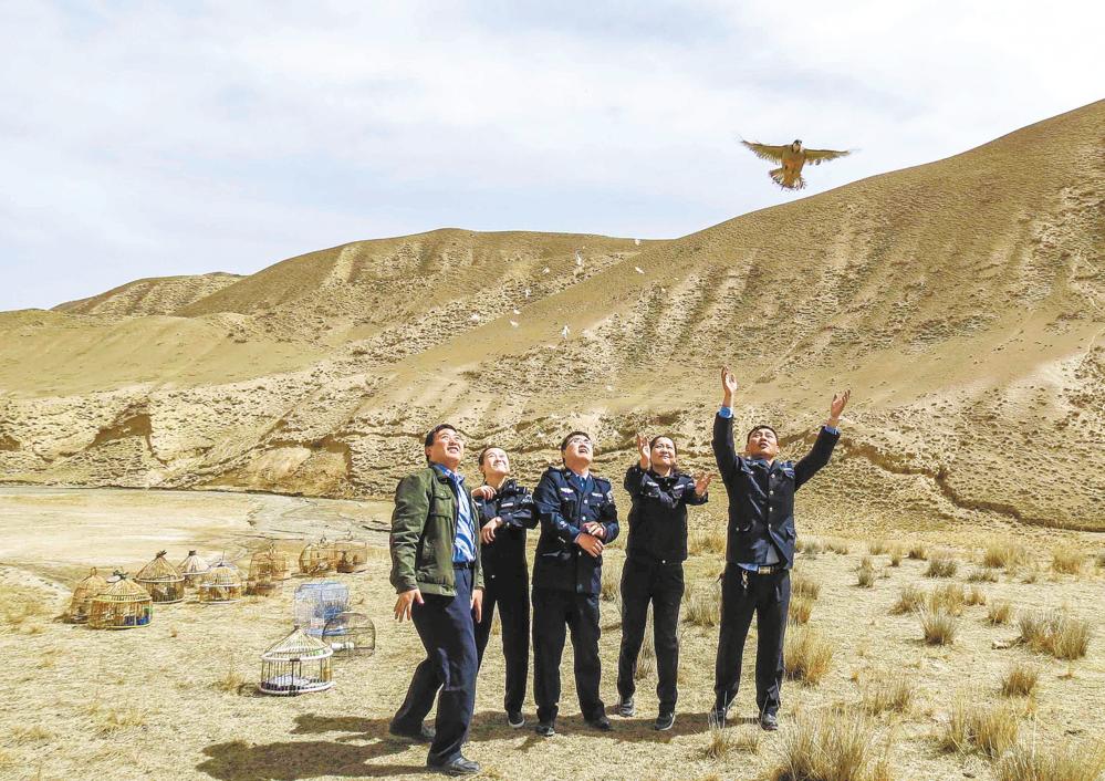 森林公安將救助的鳥(niǎo)類放回大自然。