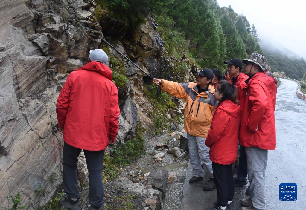 9月7日,在西藏日喀則市一處山體,中科院地理科學與資源研究所客座教授李渝生(左二)和年輕的科考隊員分析地質(zhì)災害問題。新華社記者 杜剛 攝