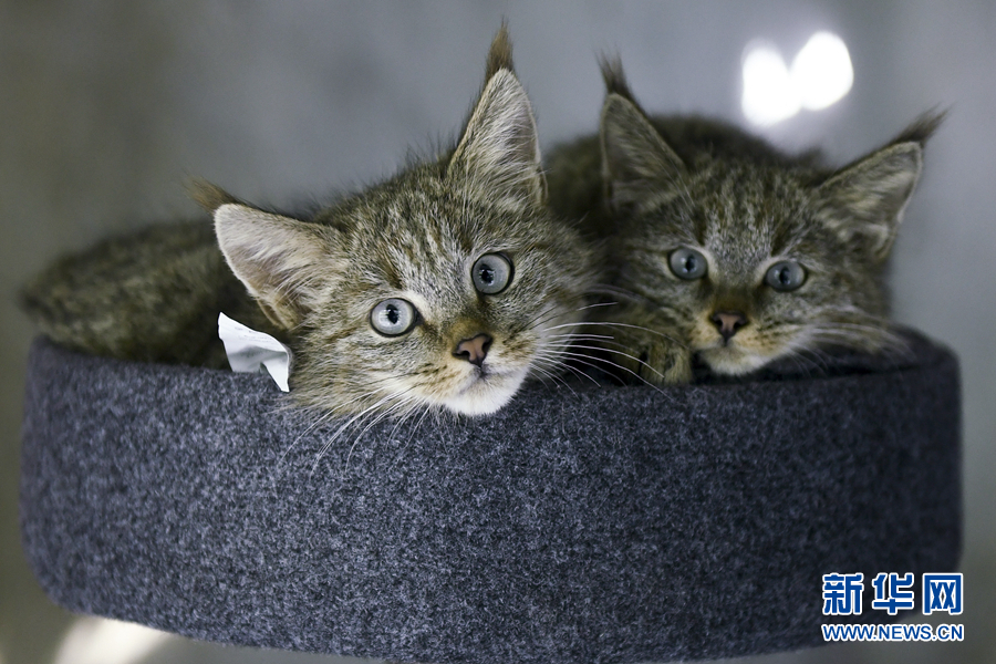 這是9月30日在西寧野生動(dòng)物園拍攝的兩只人工救助的荒漠貓幼崽。新華社記者 張龍 攝