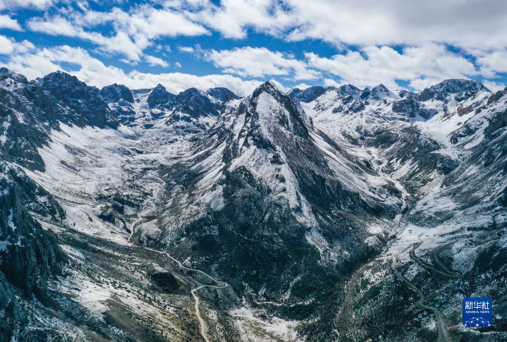 巴巴溝景區(qū)內(nèi)的雪山(10月23日攝,無人機(jī)照片)。新華社記者 王曦 攝