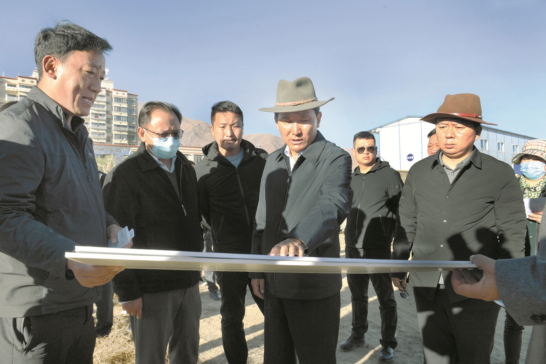 11月10日下午,市委副書記、市長(zhǎng)果果實(shí)地調(diào)研納金水源地城市水系取水情況及我市固定資產(chǎn)投資、重點(diǎn)項(xiàng)目推進(jìn)情況。圖為果果詳細(xì)了解拉薩城投房地產(chǎn)項(xiàng)目建設(shè)情況。拉薩融媒記者 巴桑次仁攝