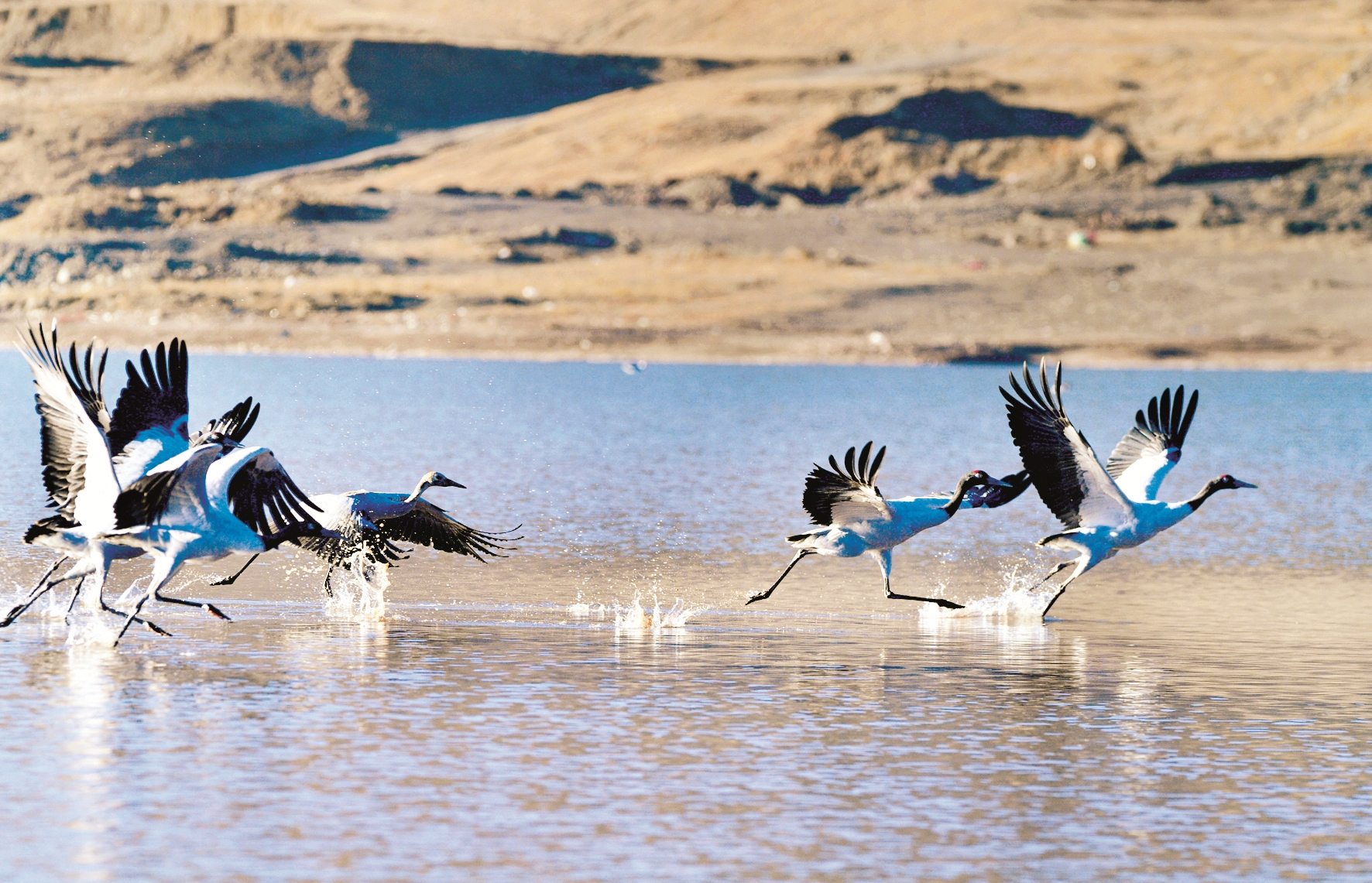 近日,來到拉薩市林周縣的黑頸鶴已達1500只左右,這里成為黑頸鶴越冬的樂園。