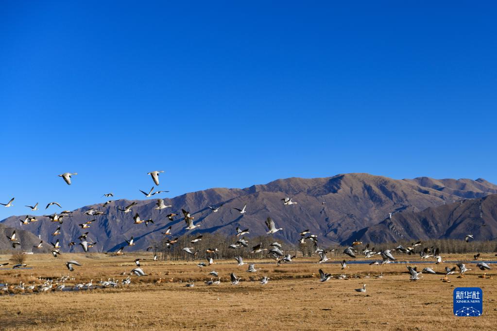 這是在唐嘎濕地棲息的候鳥(niǎo)(12月11日攝)。新華社記者 沈虹冰 攝