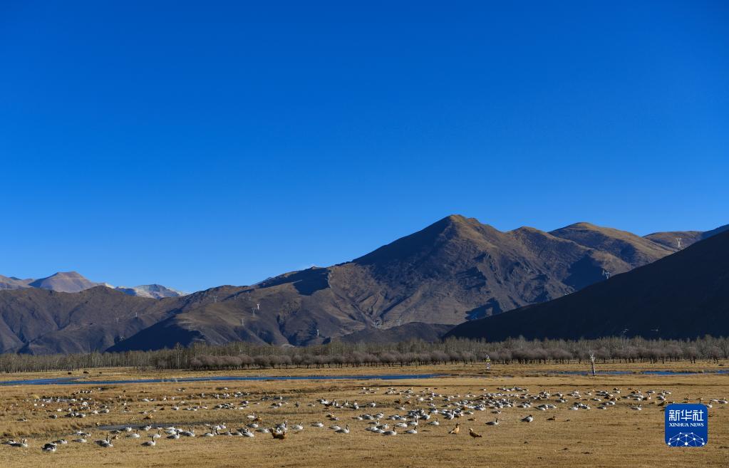 唐嘎鄉(xiāng)位于拉薩市達(dá)孜區(qū)東北部,這里每年冬季都會(huì)迎來(lái)黑頸鶴、斑頭雁、赤麻鴨等候鳥(niǎo)。這些在此越冬的“客人”和周邊的田園、濕地共同構(gòu)成高原冬季美景。