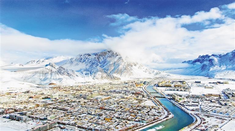 阿里地區(qū)持續(xù)開(kāi)展河湖“清四亂”專(zhuān)項(xiàng)行動(dòng),實(shí)現(xiàn)河暢、水清、岸綠、景美,河湖資源永續(xù)利用。 圖為雪后的獅泉河。 記者 洛桑旦增 攝