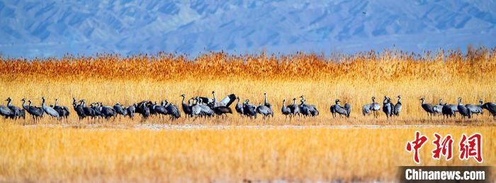 幾百只灰鶴齊聚柴達木盆地可魯克湖