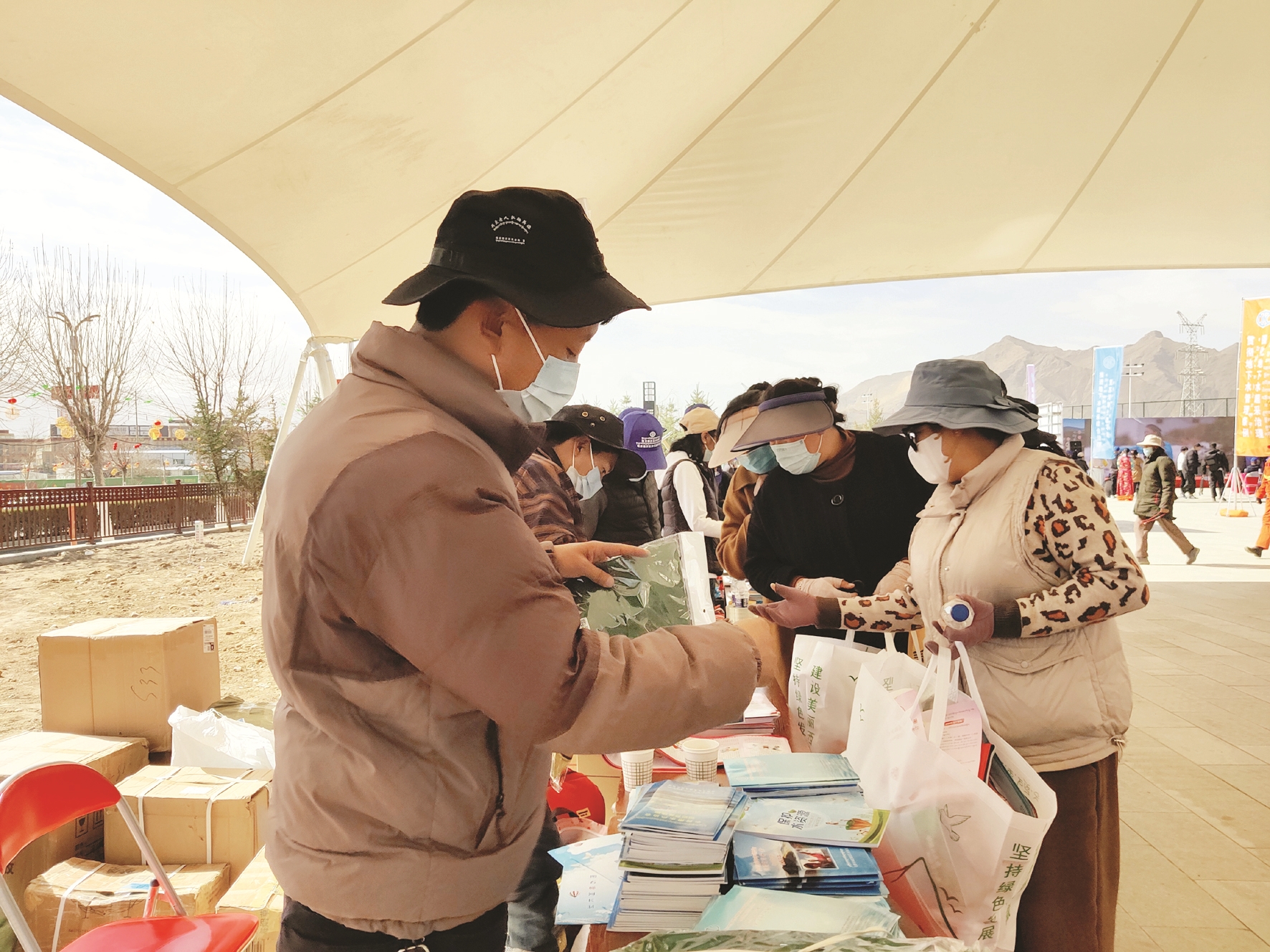 圖為工作人員在為群眾發(fā)放節(jié)水紀念品和宣傳冊。 拉薩融媒記者 余洋洋攝