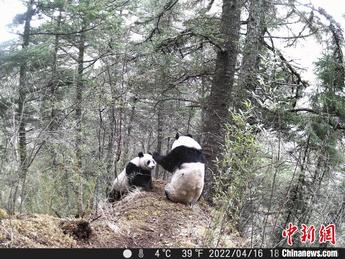 四川黃龍自然保護區(qū)紅外線相機拍攝大熊貓聚集打斗爭奪交配權