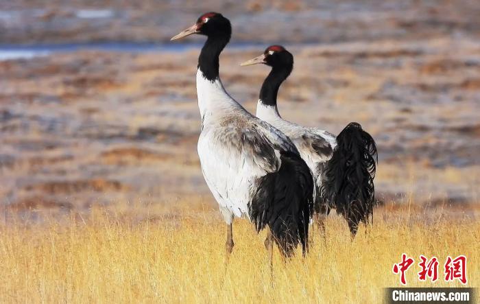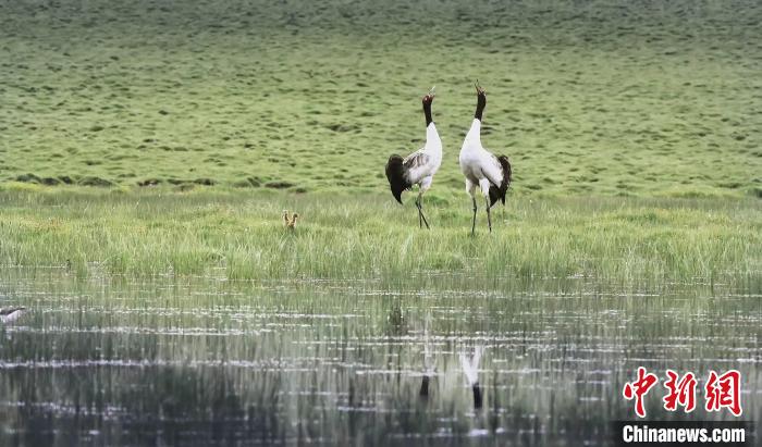 圖為黑頸鶴夫婦以高聲合鳴的方式宣誓領(lǐng)地,威懾入侵者?!埦霸?攝