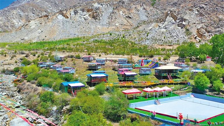 拉薩的夏天,是林卡的季節(jié)。進入夏季以來,前來維巴村林卡游玩的市民絡(luò)繹不絕,一派熱鬧景象。走進這些林卡,綠樹掩映、流水潺潺、鮮花開放、溫度宜人,一頂頂帳篷散落在小溪邊更顯詩意,帳篷旁寬敞干凈的游泳池在陽光的照耀下泛著點點金光,人們漫步草地上悠閑地賞景,享受著夏日里的清涼。目前,維巴村共有25家大大小小的林卡,其中不乏網(wǎng)紅林卡,一到節(jié)假日林卡里就會出現(xiàn)火爆的場面。