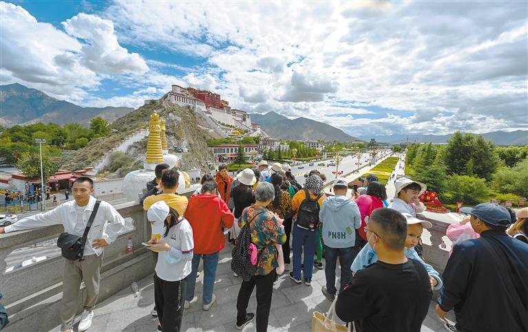圖為游客在布達(dá)拉宮觀景臺欣賞美景。記者 旦增蘭澤 攝