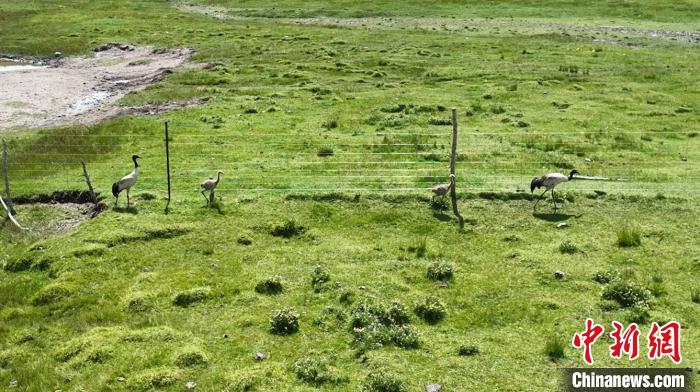 圖為“高原仙子”黑頸鶴一家四口。 澤庫(kù)縣委宣傳部 供圖